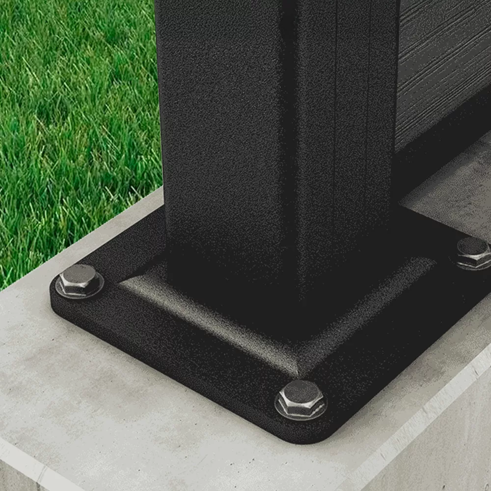 A 180 cm magas oszlop lefúrható talplemezzel készül, amely lehetővé teszi a gyors és biztonságos telepítést kemény felületekre – például betonra, térkőre vagy teraszra.