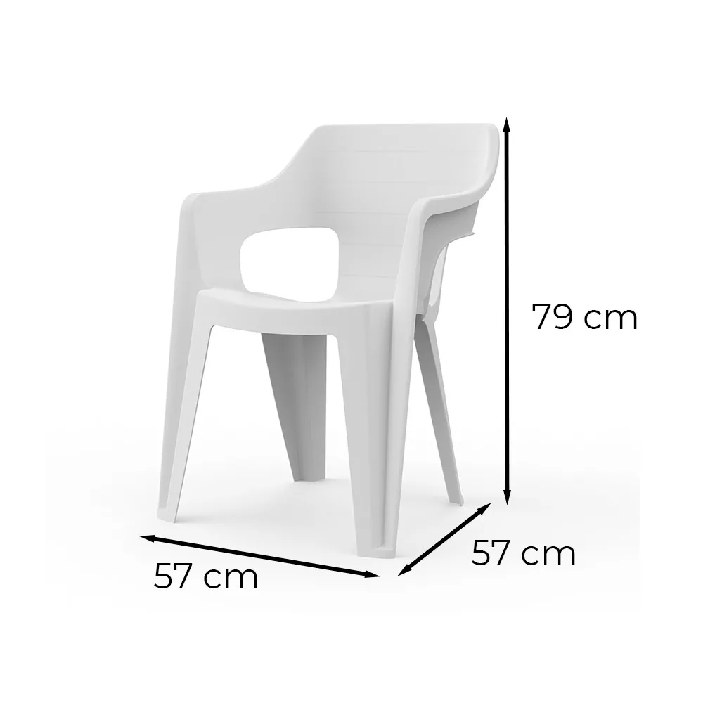 A szék strapabíró, UV-álló műanyagból készült, amely ellenáll az időjárás viszontagságainak, nem repedezik, nem fakul, nem deformálódik. A vízelvezető nyílás és az ergonomikus forma egyszerre biztosít kényelmet és tartósságot – hosszú távon is.
