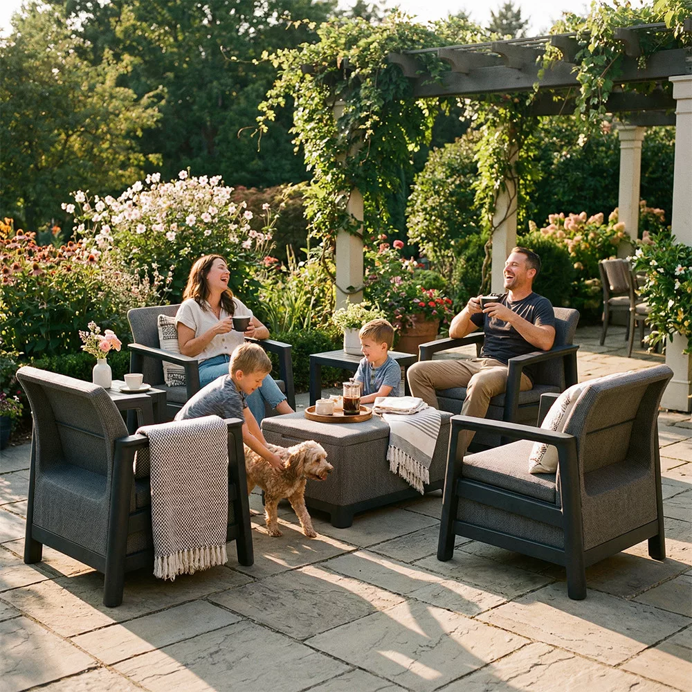 Időjárásálló műanyag kerti bútor kültéri használatra