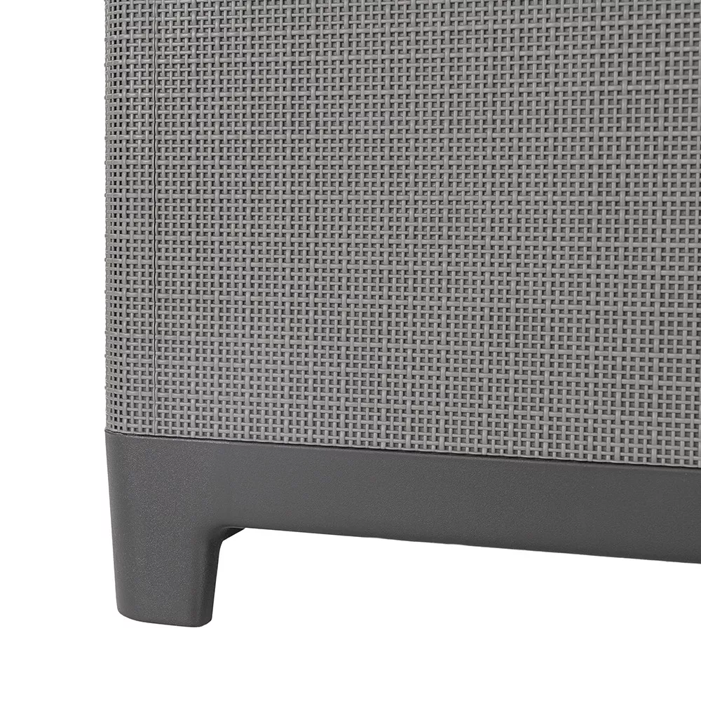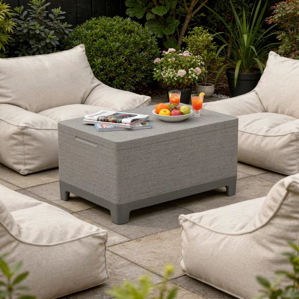 A Scandi jute tárolós asztal letisztult, modern formavilágot képvisel, amely illeszkedik a Scandi kollekció stílusához. A grafit–hűvös szürke árnyalat visszafogott és könnyen kombinálható különböző kültéri bútorokkal és burkolatokkal. A kompakt kialakítás lehetővé teszi, hogy kisebb teraszokon, erkélyeken vagy kertben is praktikus elhelyezést kapjon, miközben önálló bútordarabként is esztétikus megjelenést biztosít.