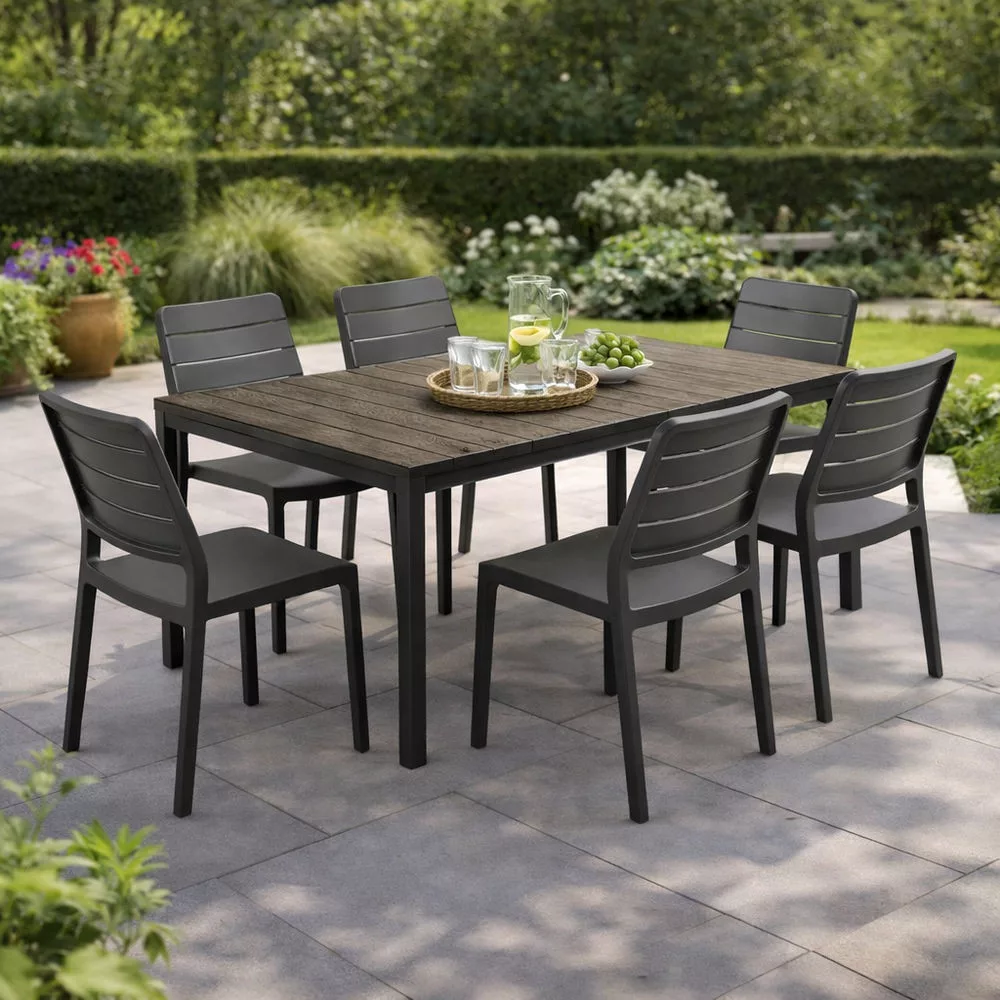 A DecoCoat technológiának köszönhetően az asztal a természetes fa megjelenését idézi, miközben a műanyag tartósságát kínálja. A felület ellenáll a karcolásoknak és az időjárási hatásoknak.