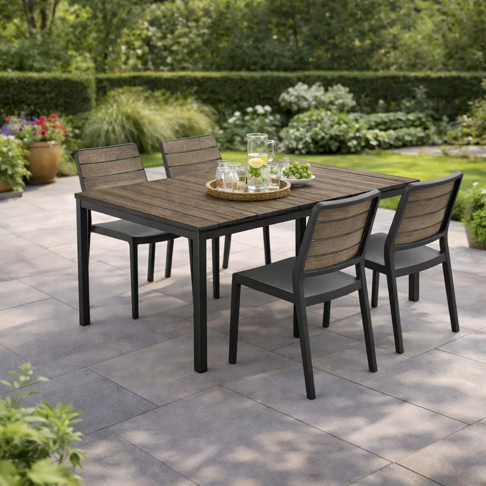 Porto Nova 160 műanyag kerti asztal dió-grafit