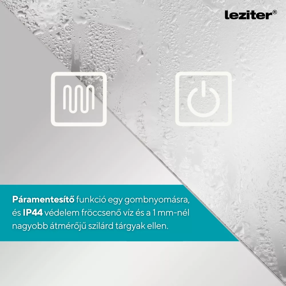 - Páramentesítő funkció: gombnyomásra aktiválható, megakadályozza a pára lecsapódását, így a tükör zuhanyzás után is azonnal használható