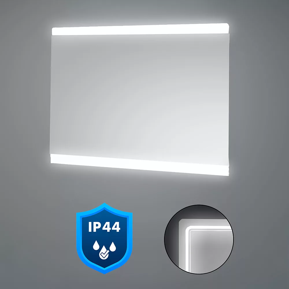 Biztonságos és tartós: Az IP44 védelmi osztály azt jelenti, hogy ezek a LED tükrök védettek a fröccsenő víz és a 1 mm-nél nagyobb átmérőjű szilárd tárgyak ellen. Ezáltal tökéletes választást nyújtanak fürdőszobákba vagy bármilyen párás környezetbe.