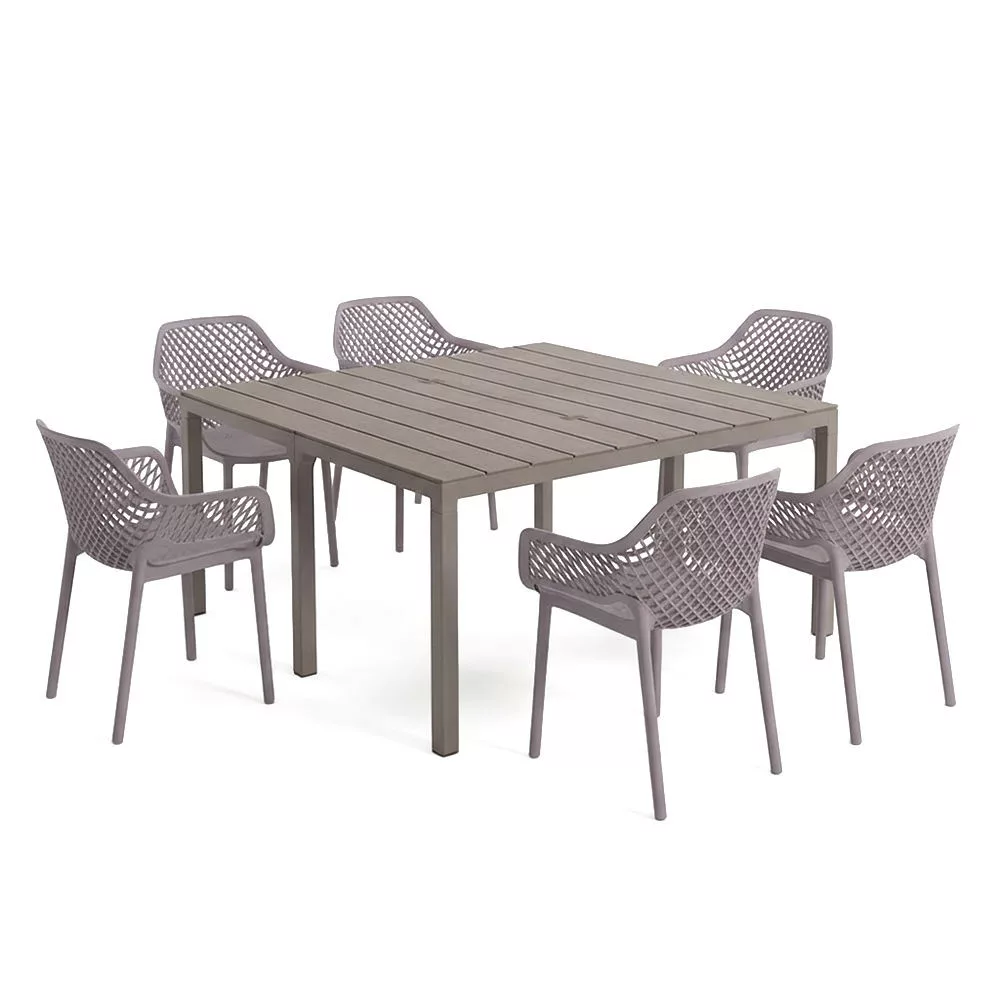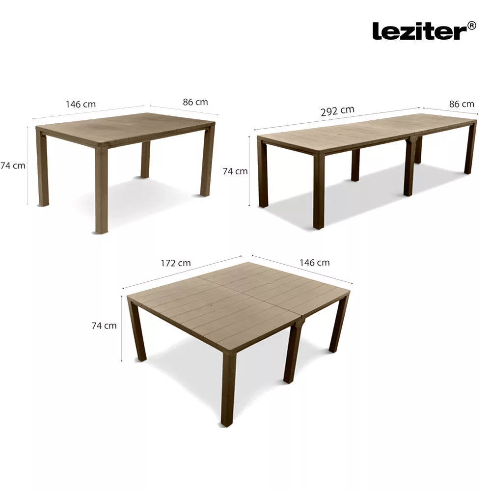 A Luno 6+1 kerti bútor garnitúra cappuccino színben sokoldalú és hosszú távon megbízható választás kültéri használatra. A bővíthető asztal és a rakásolható székek kombinációja lehetővé teszi, hogy a bútor szett könnyen alkalmazkodjon a mindennapi használathoz és a nagyobb összejövetelekhez is.
