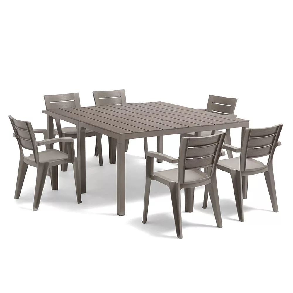 A Rava 6+1 kerti bútor garnitúra cappuccino színben rugalmas, nagy kapacitású és időjárásálló megoldást kínál kültéri használatra. A bővíthető asztal és a kényelmes székek kombinációja lehetővé teszi, hogy a bútor szett minden alkalomhoz alkalmazkodjon.
