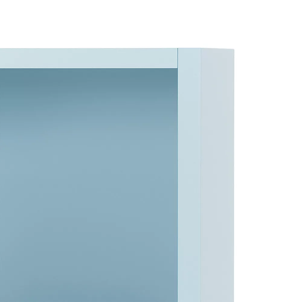 A kék nyitott Boxie fali szekrény ideális választás tudatos lakberendezőknek, kisebb lakások tulajdonosainak és mindazoknak, akik értékelik a variálható, dekoratív tárolókat.