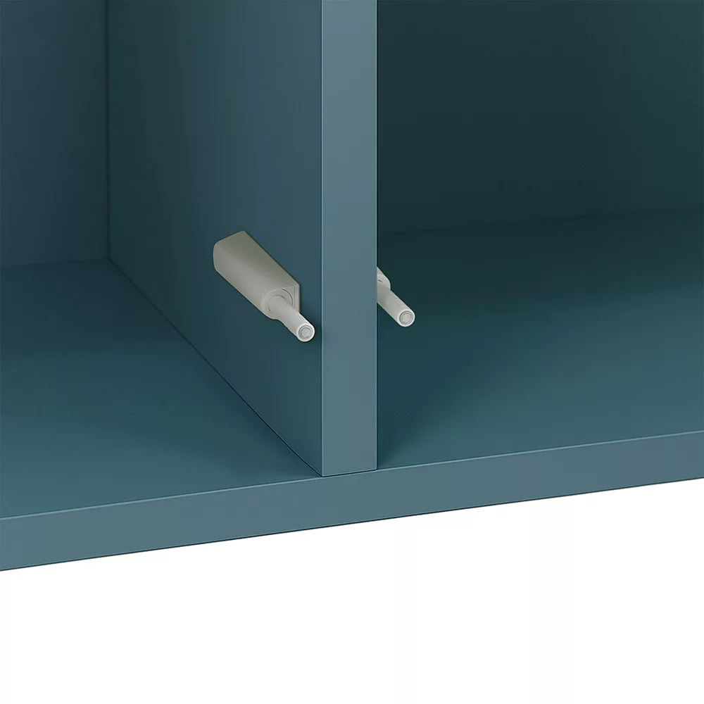 A petrol kék 2 ajtós Boxie fali szekrény ideális választás tudatos lakberendezőknek, kisebb lakások tulajdonosainak és mindazoknak, akik értékelik a variálható, dekoratív tárolókat.