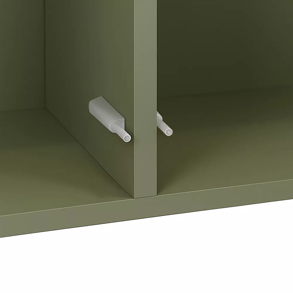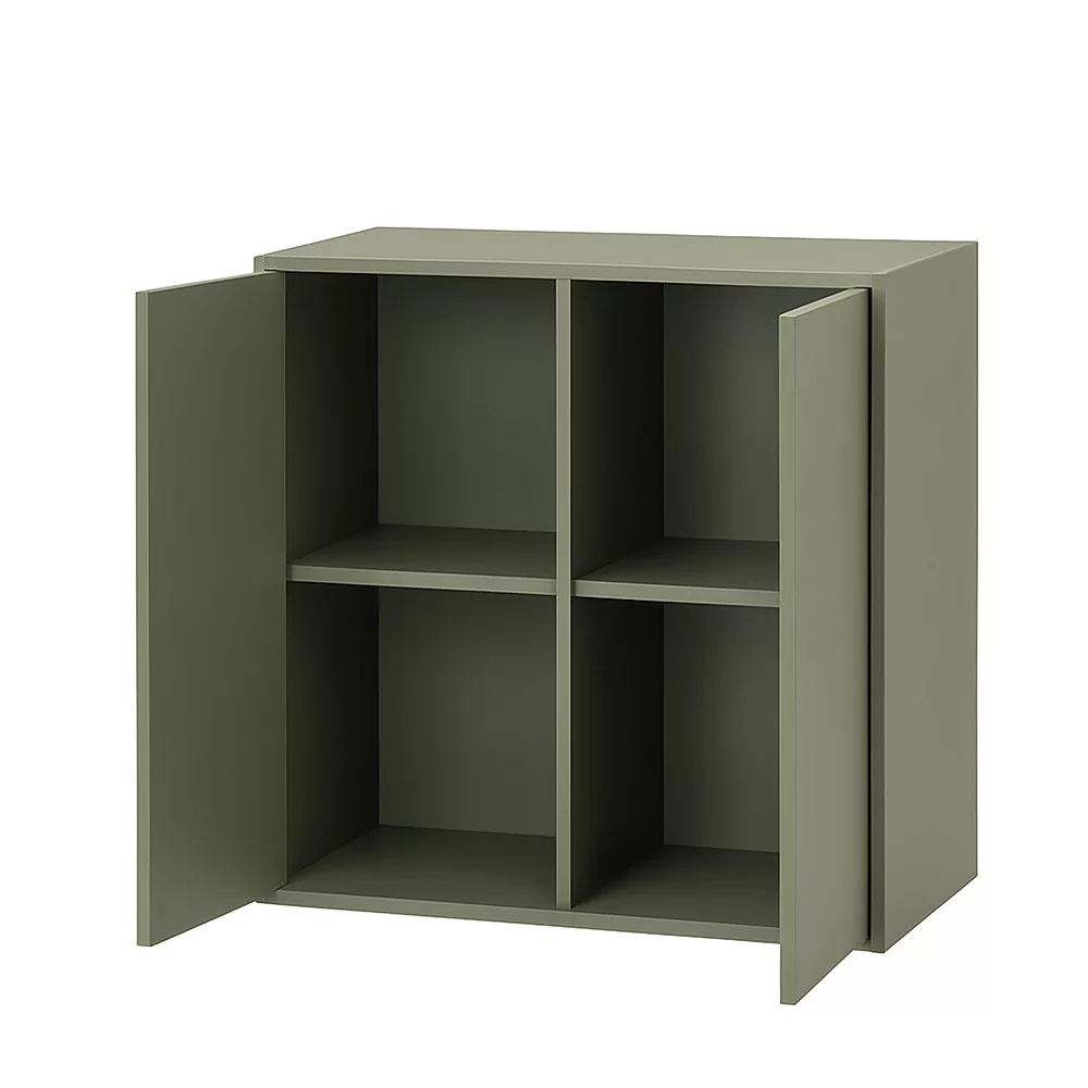 A zöld 2 ajtós Boxie fali szekrény ideális választás tudatos lakberendezőknek, kisebb lakások tulajdonosainak és mindazoknak, akik értékelik a variálható, dekoratív tárolókat.