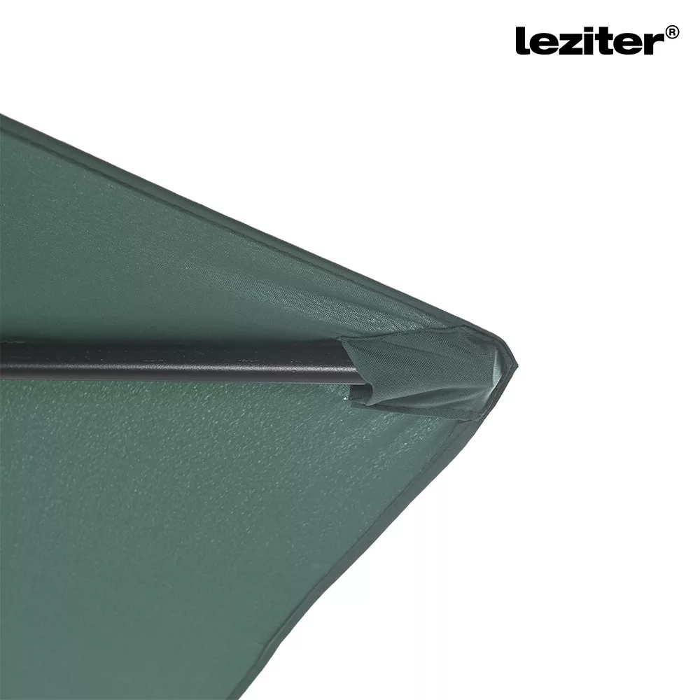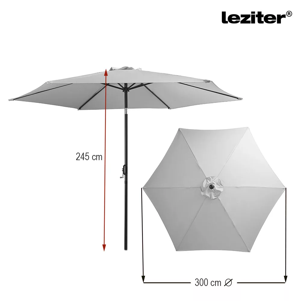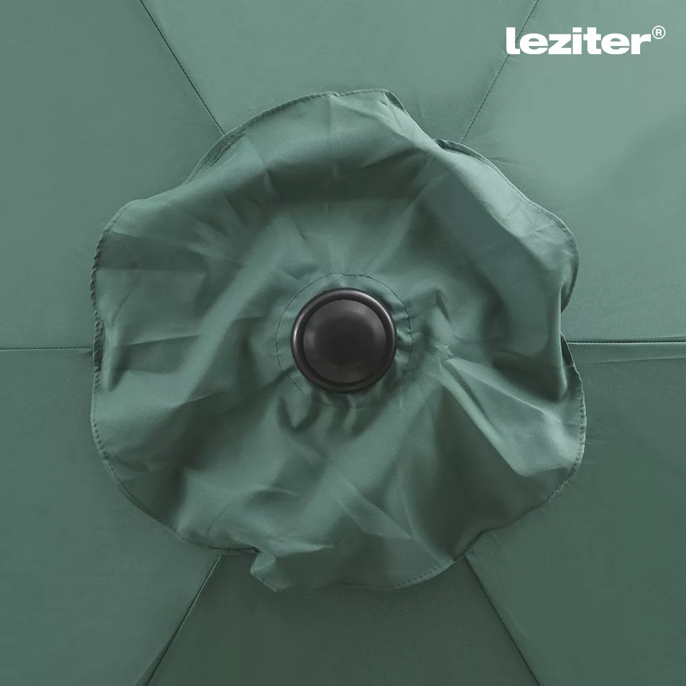 A Leziter Gina kerti napernyő 300 cm átmérőjű kialakítással rendelkezik, amely egyenletes lefedést biztosít a középoszlop körül. A kör alakú forma jól használható kertekben, teraszokon vagy kerti bútorok fölött. A ponyva kialakítása a mindennapi kültéri használathoz igazodik, felülete vízlepergető, így a nedvesség nem szívódik fel azonnal. A zöld szín természetes hatású megjelenést biztosít, amely könnyen illeszkedik különböző kerti környezetekbe.