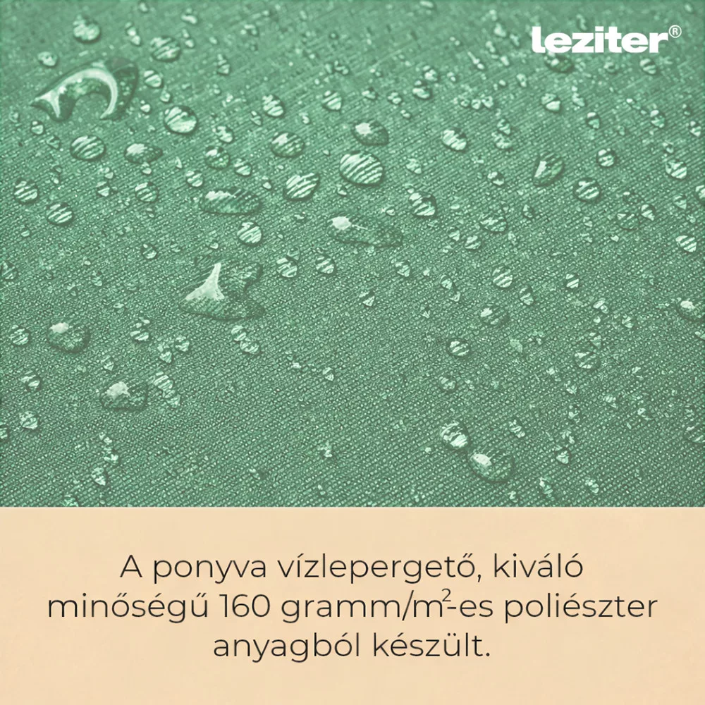 - Ponyva anyaga: 160 g/m² poliészter PA bevonattal