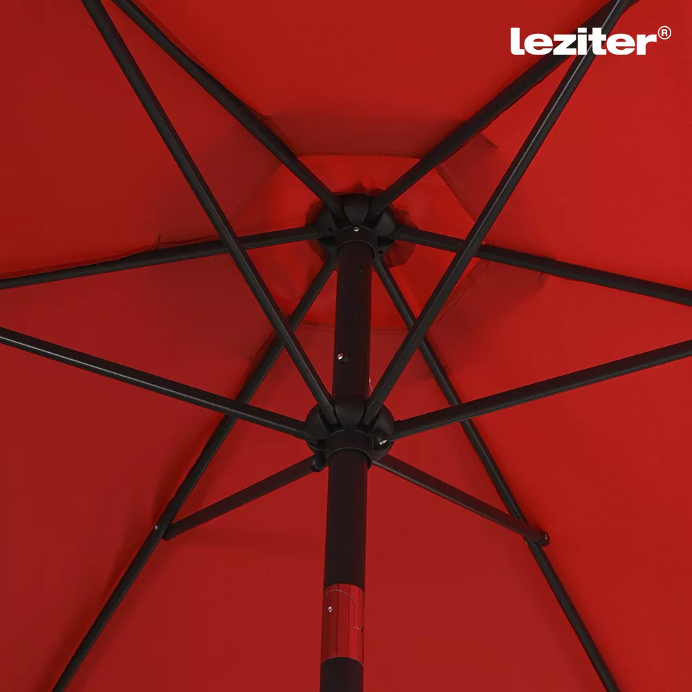 A Leziter Gina kerti napernyő 300 cm átmérőjű kialakítással rendelkezik, amely egyenletes lefedést biztosít a középoszlop körül. A kör alakú forma jól használható kertekben, teraszokon vagy kerti bútorok fölött. A ponyva kialakítása a mindennapi kültéri használathoz igazodik, felülete vízlepergető, így a nedvesség nem szívódik fel azonnal. A piros szín karakteres megjelenést ad, és jól illeszkedik különböző kerti környezetekhez.