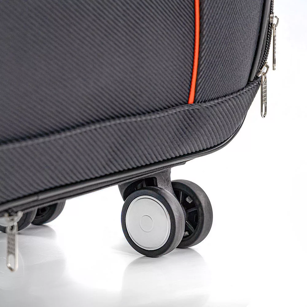 A szett mindkét darabja 4 db halk, dupla kerékkel rendelkezik, amelyek 360°-ban forgathatók. Ez a kialakítás lehetővé teszi a gördülékeny mozgást bármilyen irányban, így még a zsúfolt repülőtereken is könnyedén navigálhatsz velük.