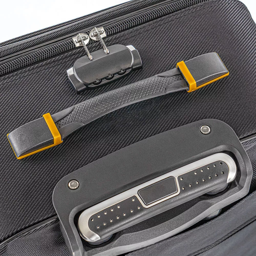 A bőröndök masszív, állítható fém teleszkópos húzókarral készültek, így a húzásuk minimális erőfeszítést igényel. Az ergonomikus felső és oldalsó fogantyúk minden helyzetben kényelmes és biztos fogást biztosítanak, akár emelésről, akár pakolásról van szó.