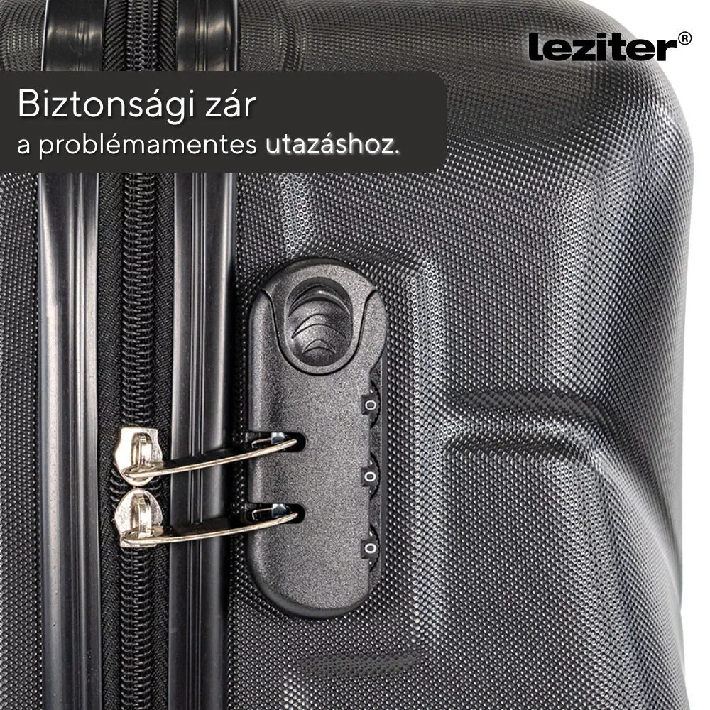 A számzárral ellátott darabok (nagy, közepes, kabin) megvédik értékeidet, míg a kézi bőrönd cipzárral záródik – ideális a gyors hozzáférést igénylő tárgyaknak.