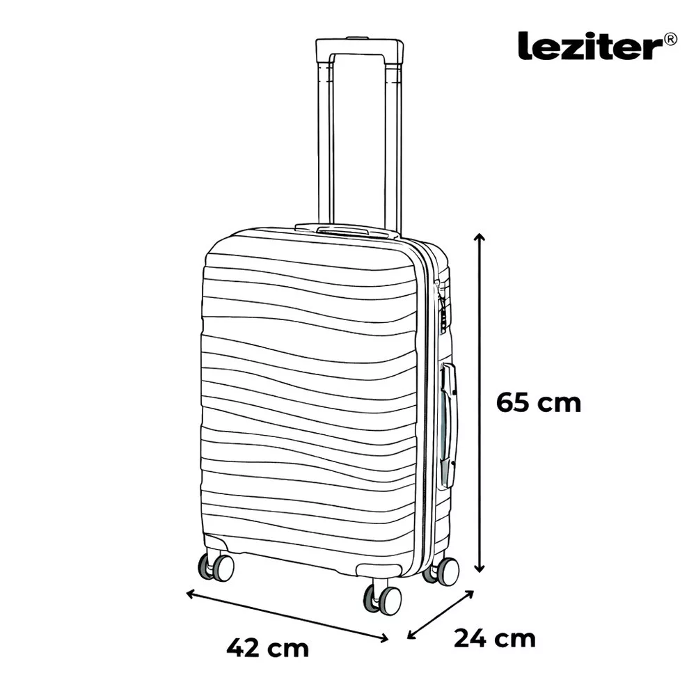 – Közepes bőrönd: 68 × 45 × 25 cm | 60 liter | 2,65 kg