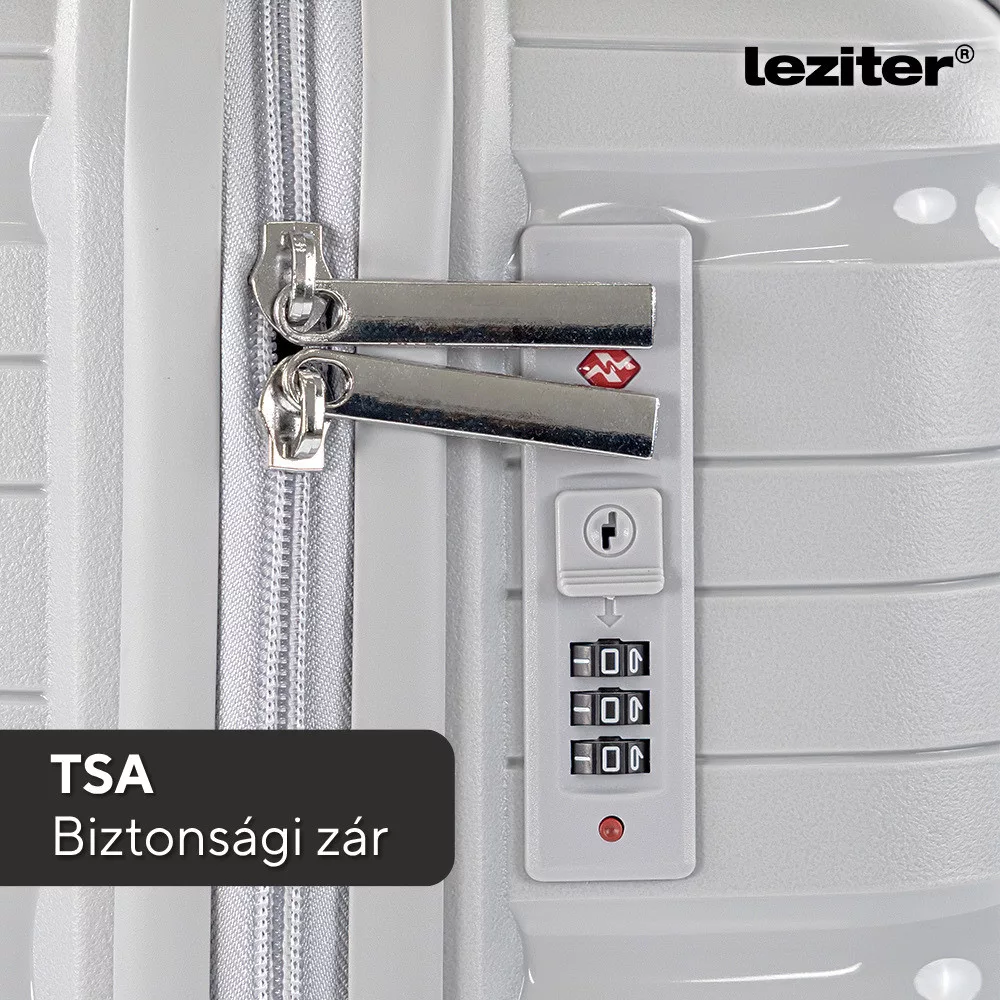 - Zár: Beépített TSA számzár (kabin és közepes bőrönd), cipzáras záródás (kézi bőrönd)