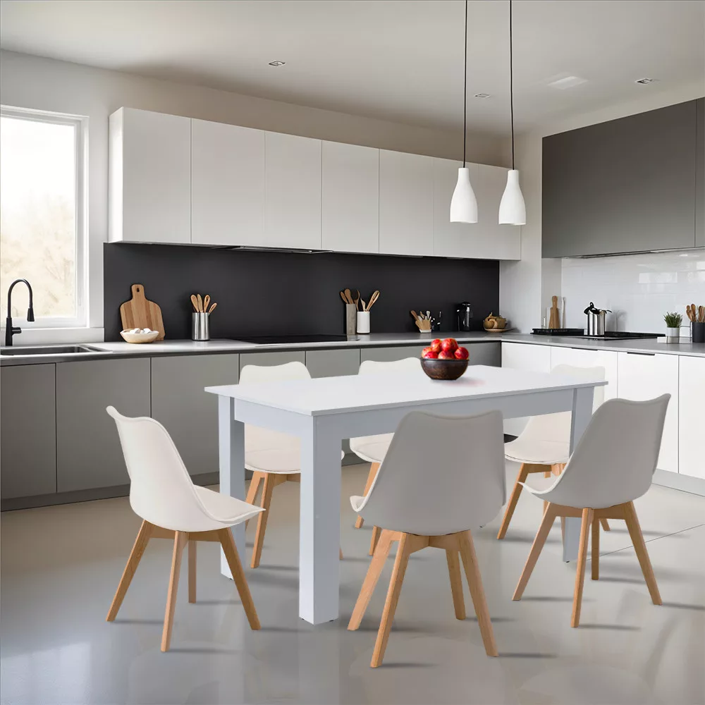 A Leziter márka Zara 6+1 étkezőgarnitúrája tökéletes választás modern lakásokba, éttermekbe és stílusos irodai konyhákba egyaránt. A garnitúra 6 db székből és 1 db asztalból, a népszerű Silla étkezőszék és a Yorki standard étkezőasztal harmonikus kombinációjából áll, egyesítve a funkcionalitást az időtlen dizájnnal. Az étkezőszett ideális 6 fő leültetésére és méretei miatt praktikusan elhelyezhető kis- és közepes helyiségekbe is.