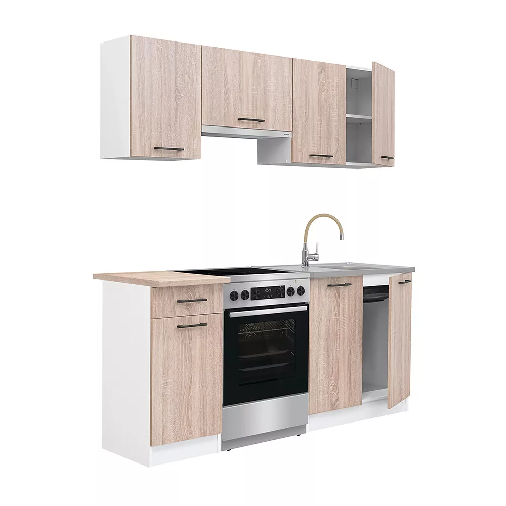 Praktik 180 cm-es konyhabútor - fehér korpusz, sonoma tölgy front