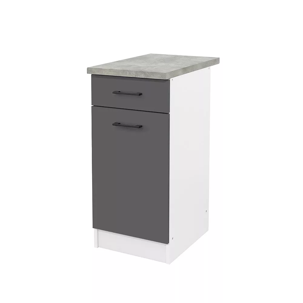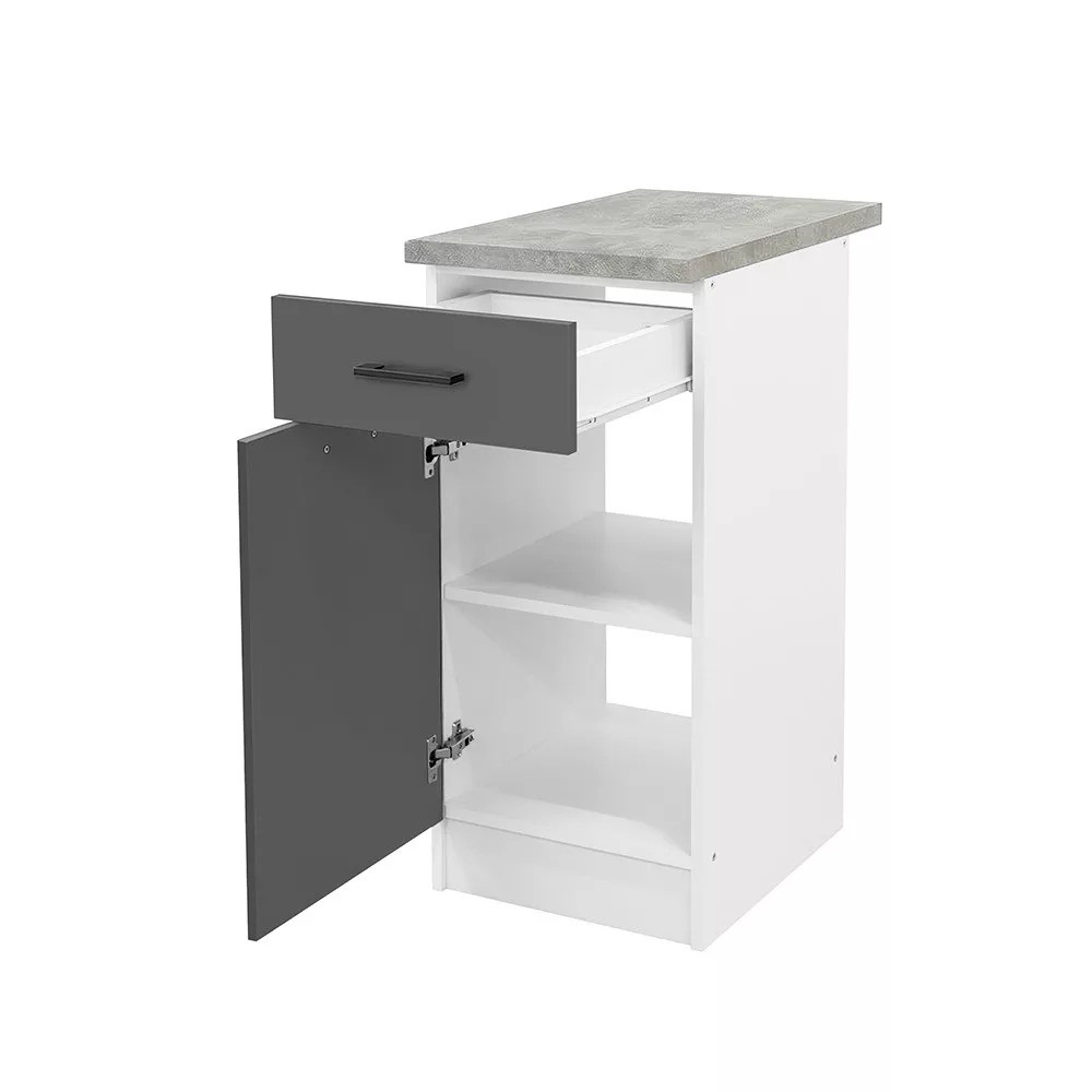 Praktik 40 alsó szekrény 1 ajtós 1 fiókos – fehér korpusz, antracit front