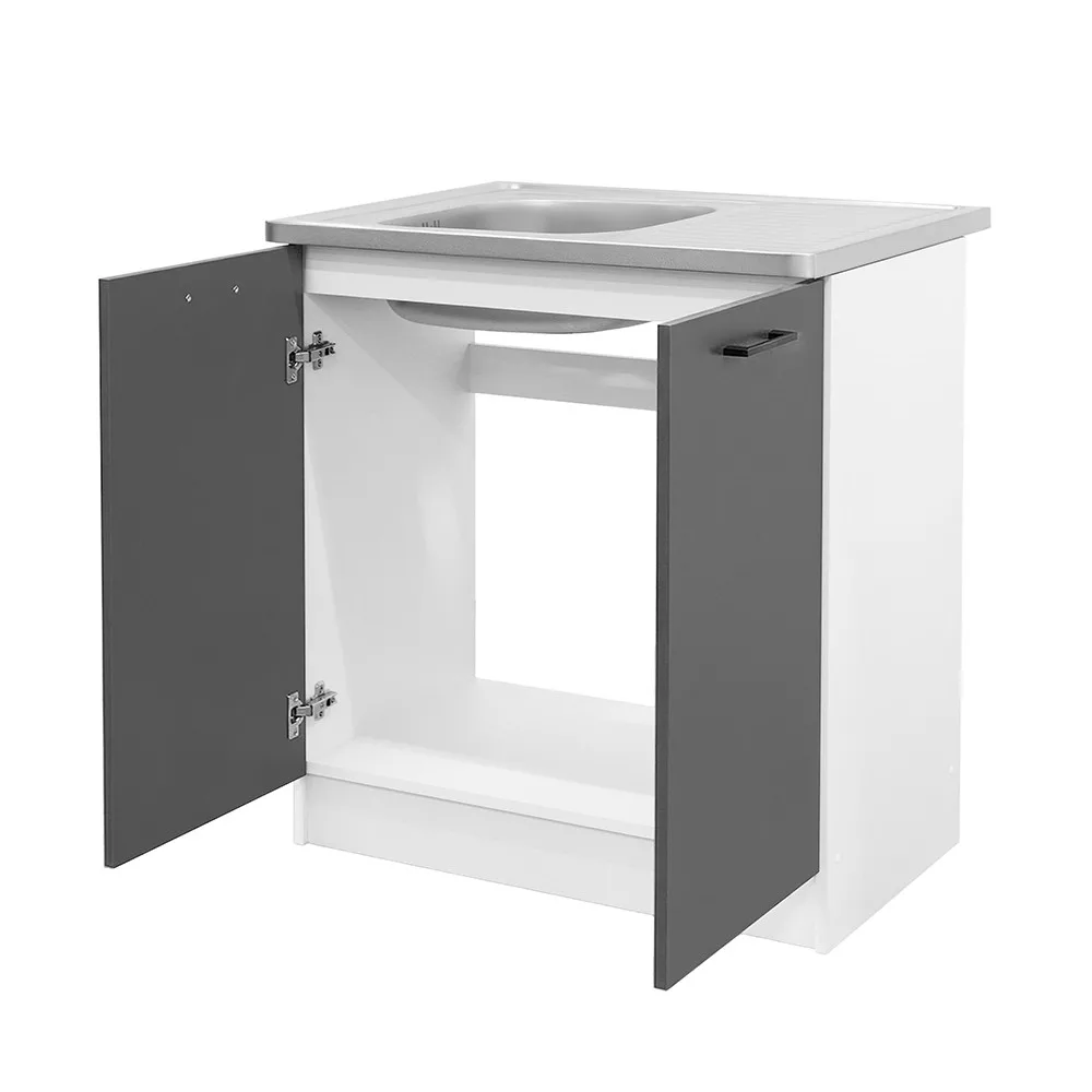 Praktik 80 alsó szekrény 2 ajtós mosogatós – fehér korpusz, antracit front