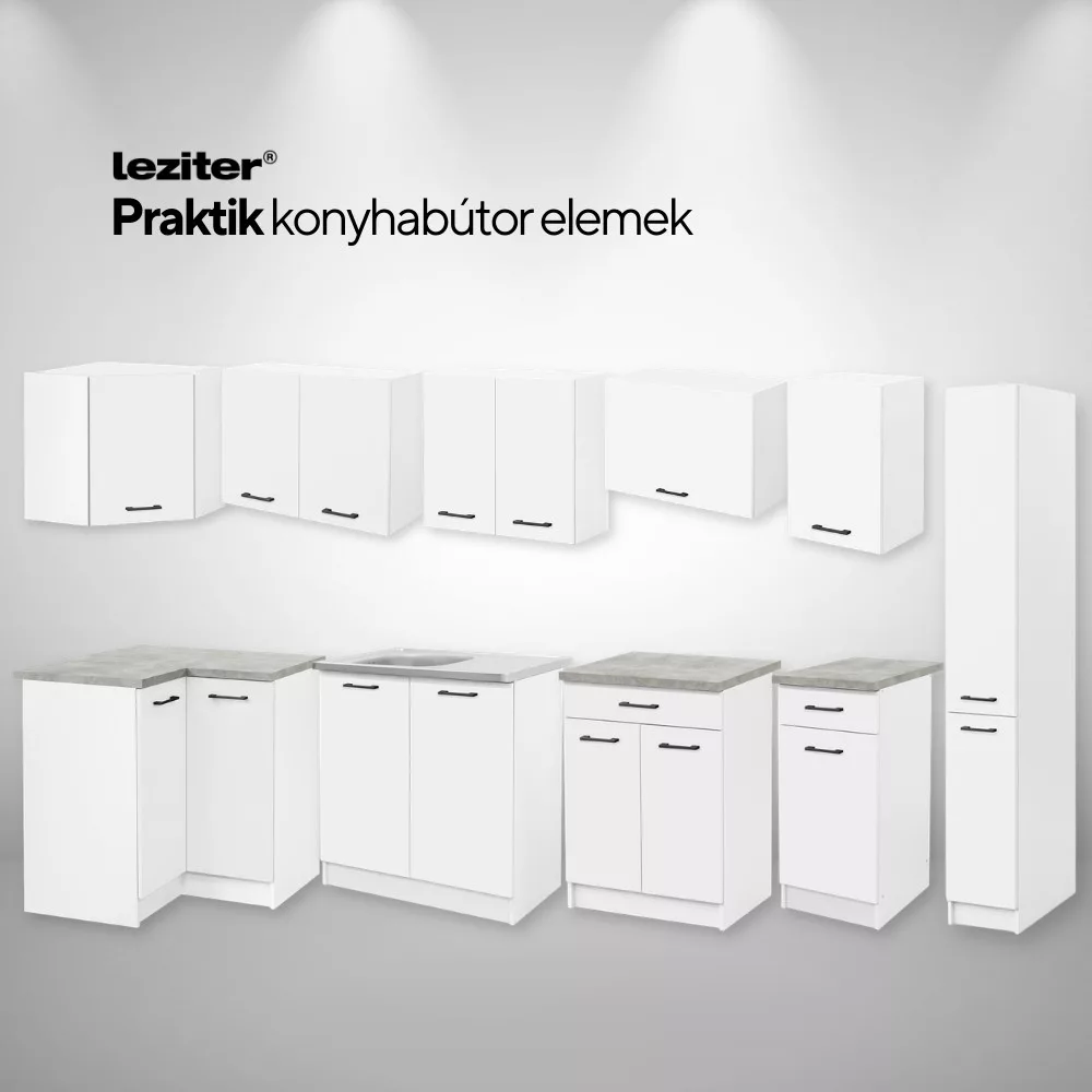 A Praktik 80 alsó szekrény fehér korpusszal és fehér fronttal illeszkedik bármilyen lakberendezési stílusba. Világos színvilága optikailag tágítja a teret, ezért ideális választás kisebb konyhákba, garzonokba és nyitott amerikai konyhás nappalikba is. Letisztult formája a mai modern otthonok kedvelt megoldása.