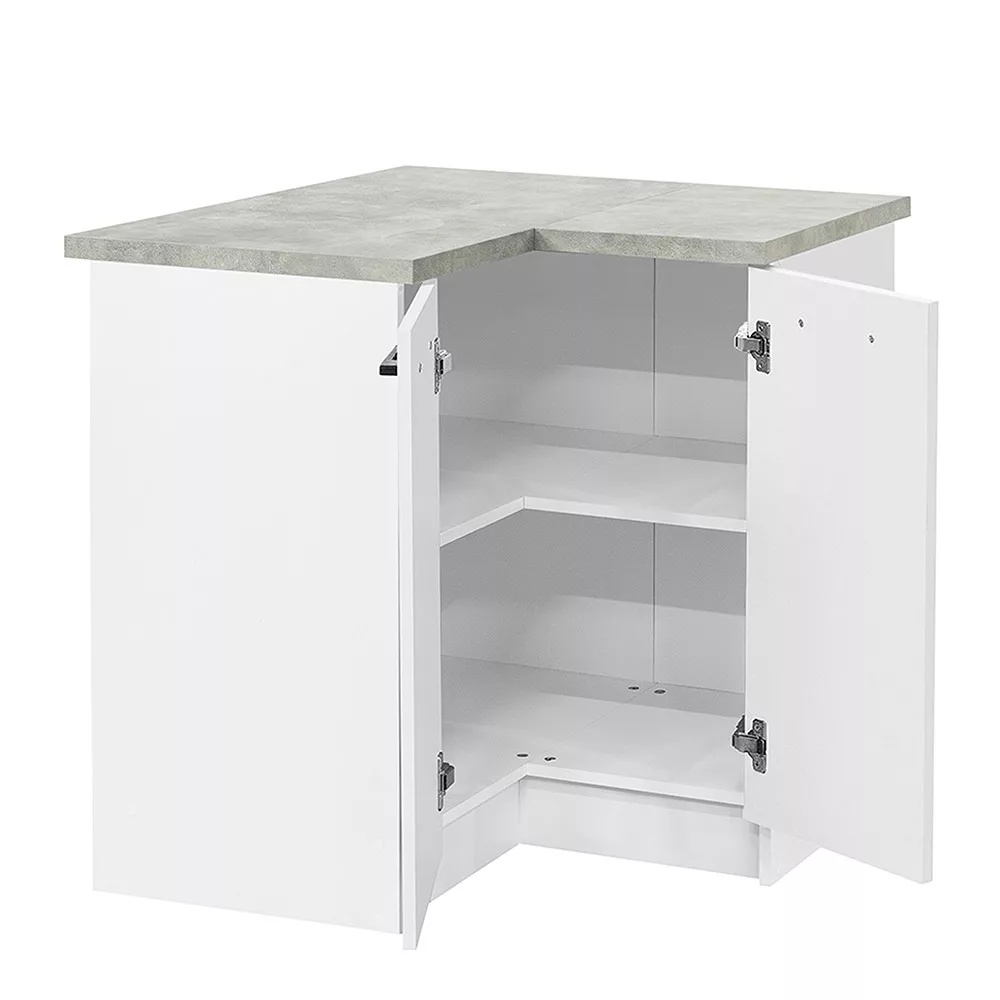 Praktik 90 alsó sarok szekrény 2 ajtós – fehér korpusz, fehér front