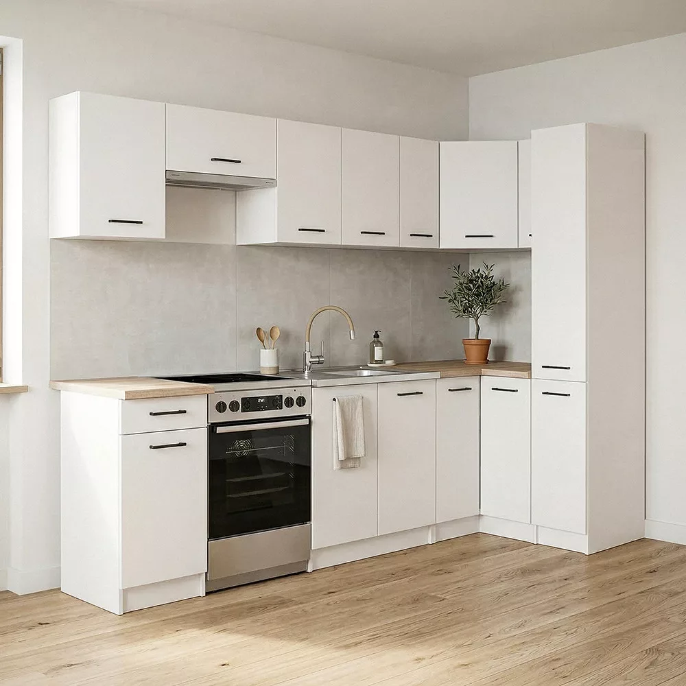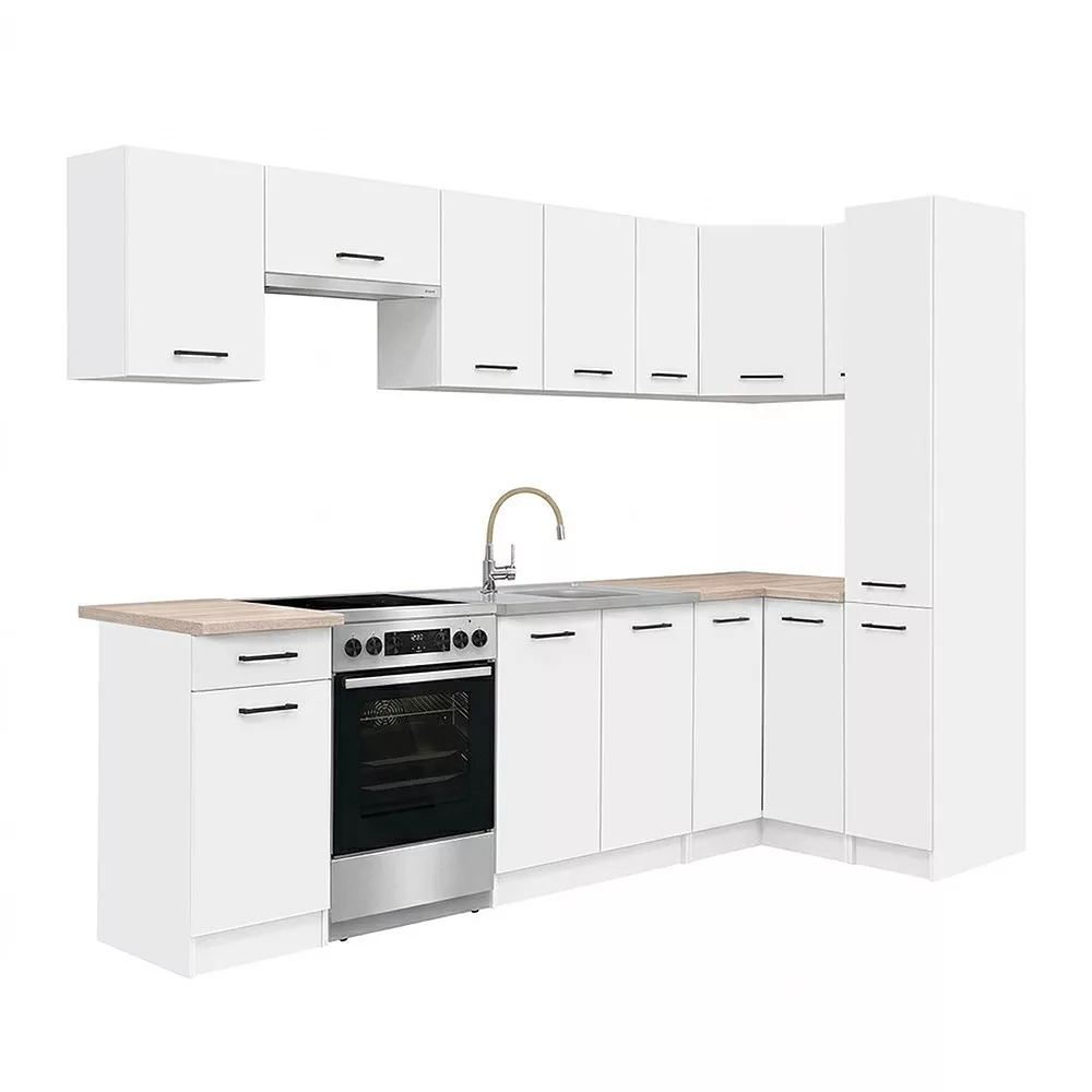 Fehér korpuszos, modern sarok konyhabútor, amely együtt nő az igényeiddel