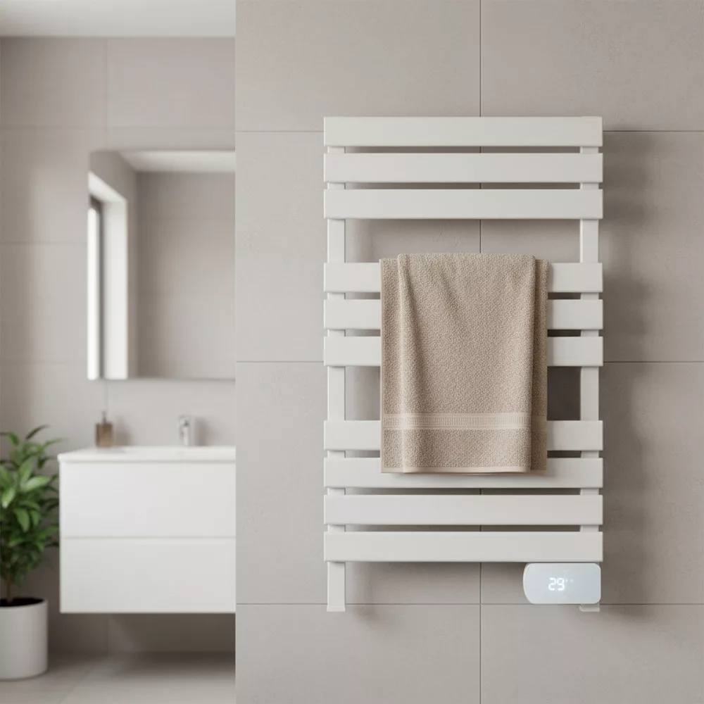 Az elektromos törölközőszárító radiátor 450W teljesítménnyel a fürdőszoba praktikus és elegáns kiegészítője. A prémium alumínium anyag biztosítja a hosszú élettartamot, miközben a hófehér felület minden enteriőrbe tökéletesen illeszkedik. Kompakt kialakításának köszönhetően kisebb és nagyobb fürdőszobákban is ideális választás.