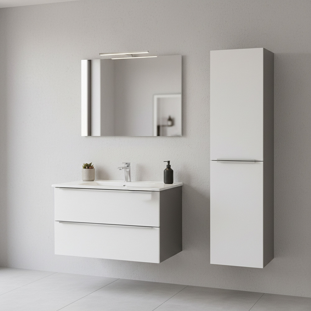 A Vario Trim 35 függesztett oldal szekrény ideális kiegészítője minden modern fürdőszobának. Remek választás, ha extra tárolóhelyre van szükség kompakt méretben a dizájnt és a minőséget is szem előtt tartva. Az antracit korpusz és fehér front időtlen, letisztult megjelenést biztosít, amely harmonikusan illeszkedik a Vario Trim család további elemeihez.