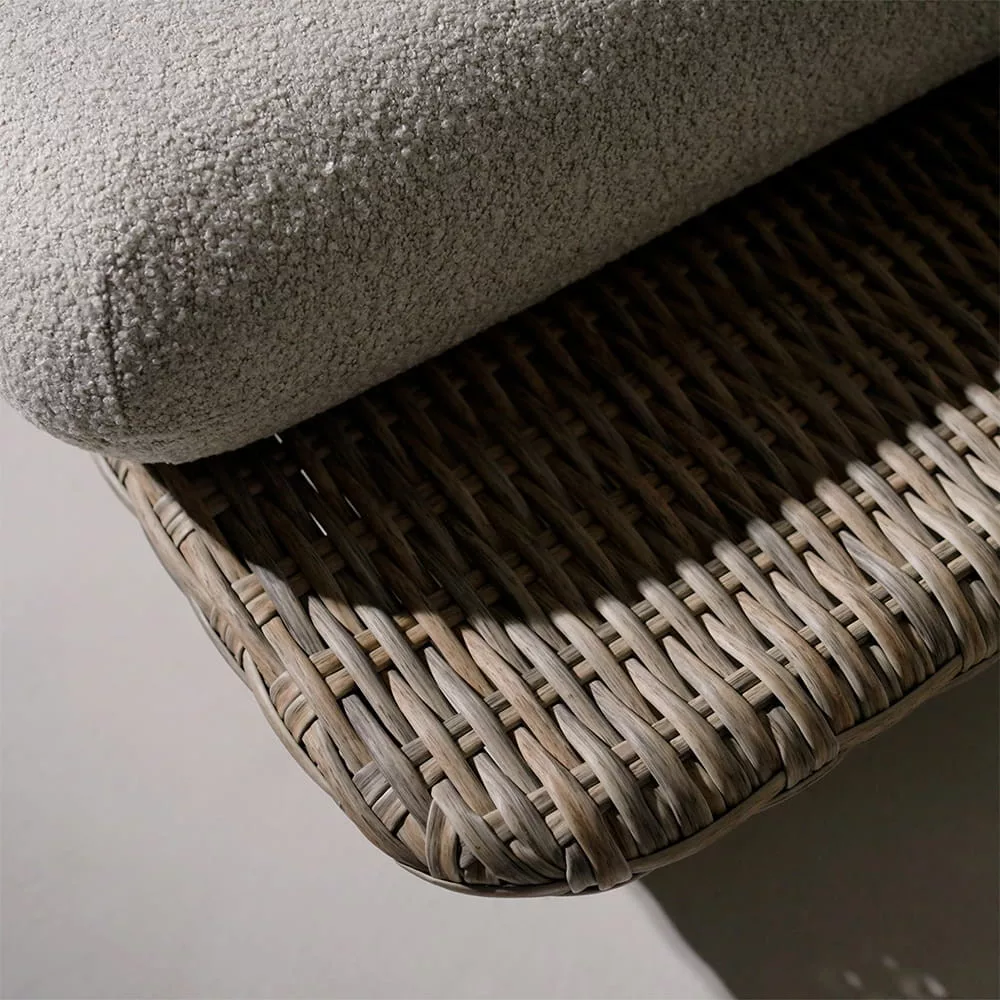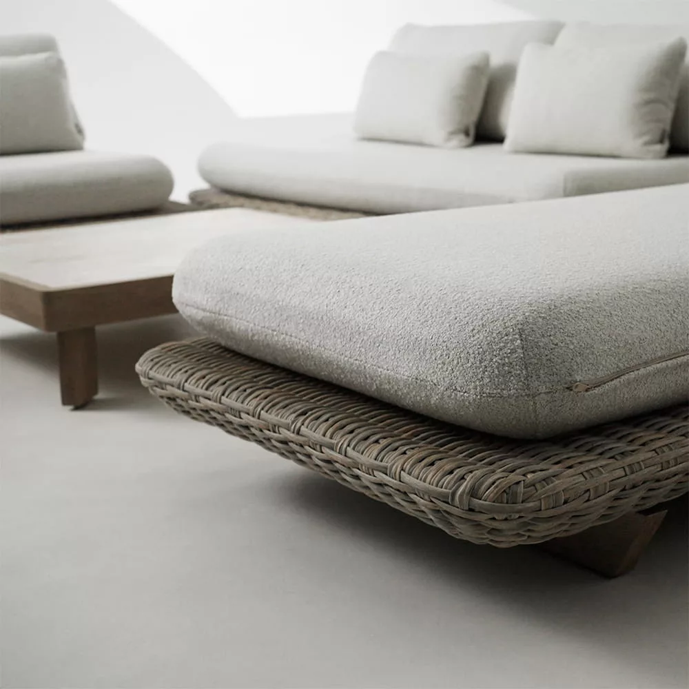 A bútorvázak porszórt alumíniumból készültek – egy olyan anyagból, amely az alacsony súlyt nagy tartóssággal ötvözi. Ez lehetővé teszi az elemek könnyű mozgatását, miközben ellenállnak a korróziónak, az intenzív napfénynek, a nedvességnek és a hőmérséklet-ingadozásoknak . A félkör alakú rattan szövés természetes hatást kölcsönöz a kompozíciónak, luxus szerkezetet hozva létre, amely kellemes a szemnek és kivételesen tartós. A Tulum egy olyan szett, amelyet úgy terveztek, hogy több évszakon át kitartson anélkül, hogy elveszítené varázsát.