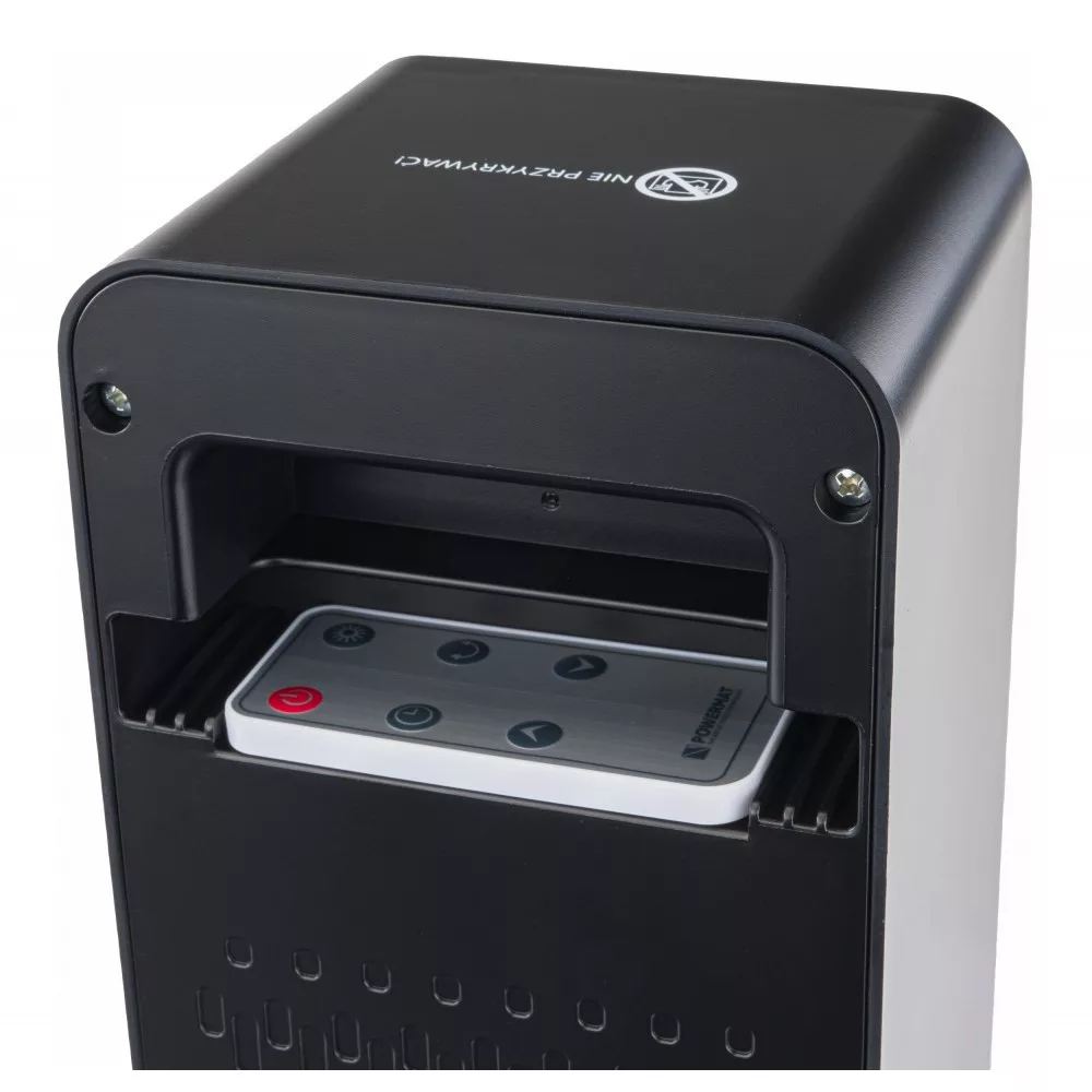 A radiátor hátulján van egy mélyedés, ahol elhelyezheti a távirányítót, és barázdált fogantyúval mozgathatja a készüléket.