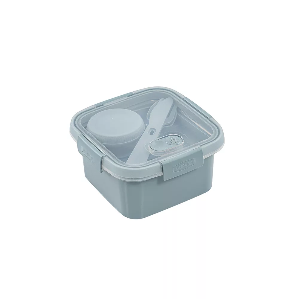 Az 1,1L-es Smart To Go szögletes ételtartó tökéletes választás mindenkinek, aki értékeli a komfortos és praktikus ételtárolási megoldásokat. Segítségével könnyedén szállítható az ebéd az iskolába, munkába, vagy akár egy kirándulásra is. A tetőben található puha tömítésnek és biztonságos zárnak köszönhetően a benne tárolt étel mindig friss marad. A fedelén található szelep kinyitása után akár fedéllel együtt is melegíthető a mikrohullámú sütőben a termék. További előnye, hogy mosogatógépben mosható, valamint hűtőszekrényben és fagyasztóban is tárolható. Az ételtároló tartozéka még egy kis méretű tálca, egy 0,15L-es szószos pohár, valamint egy evőeszközkészlet is. A termék BPA mentes és élelmiszerrel való érintkezésre feljogosító tanúsítvánnyal rendelkezik. Ha egy praktikus és funkcionális ételtárolót keresel, az 1,1L-es Smart To Go tökéletes választás lesz számodra!