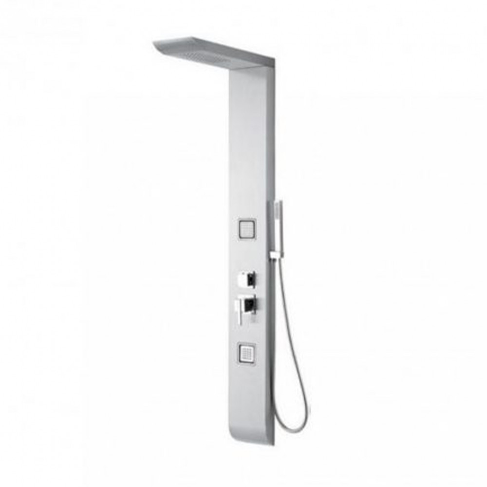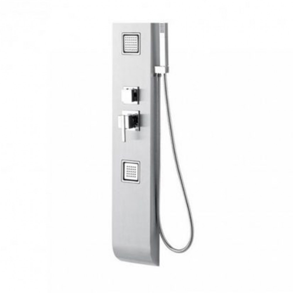A Lucia hidromasszázs zuhanypanel egy rozsdamnetes acél-aluminium ötvőzetű paneltest. Sarokba is szerelhető konzol segítségével (opció: konzol). 2 db állítható masszázsfúvókával, trópusi esőztető 50 fúvókával,kerámiabetétes keverőszeleppel, egykaros csapteleppel és kézitussal rendelkezik. Méret: 155x18x54,4 cm.
